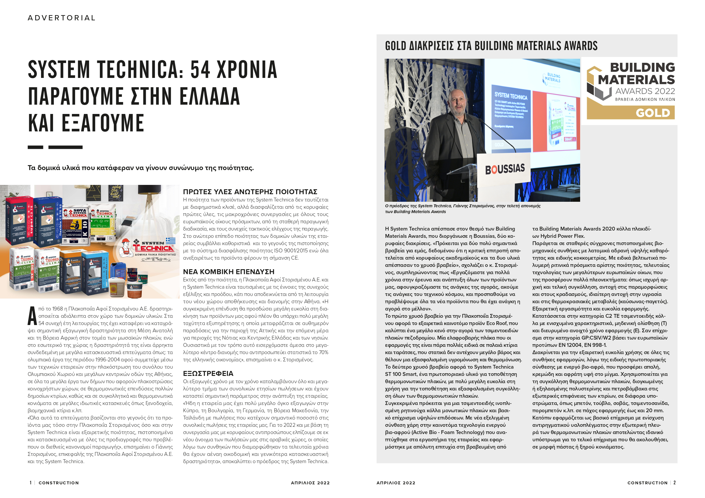 GOLD AWARD at the Building Materials Awards 2022