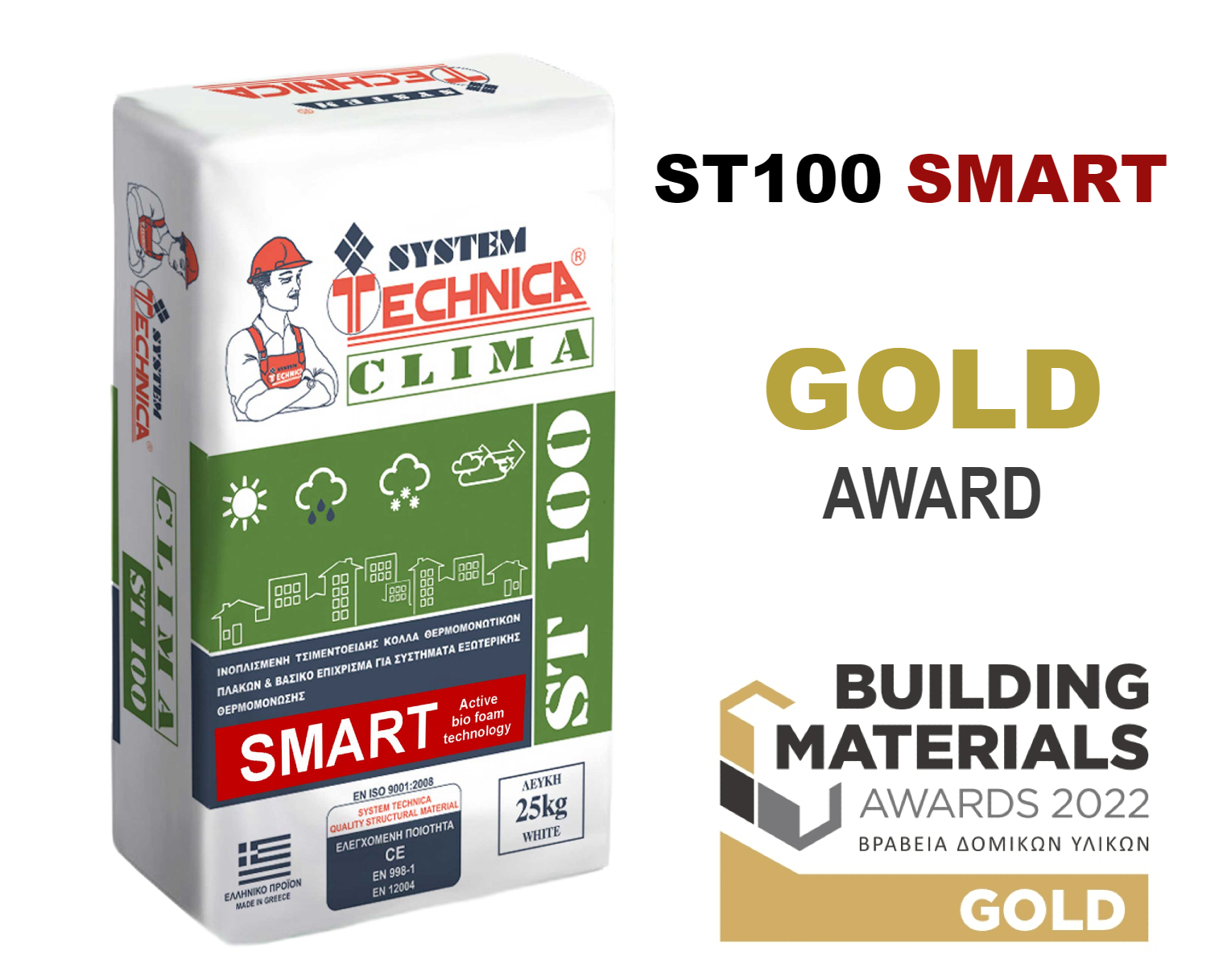 ST-100 SMART (WITH ACTIVE BIO FOAM TECHNOLOGY) REINCORCED CEMENT BASED ADHESIVE FOR THERMAL INSULATION BOARDS & BASIC COATING FOR EXTERNAL THERMAL INSULATION SYSTEMS CLASSIFICATION: C2TE – GP:CSIV/W2