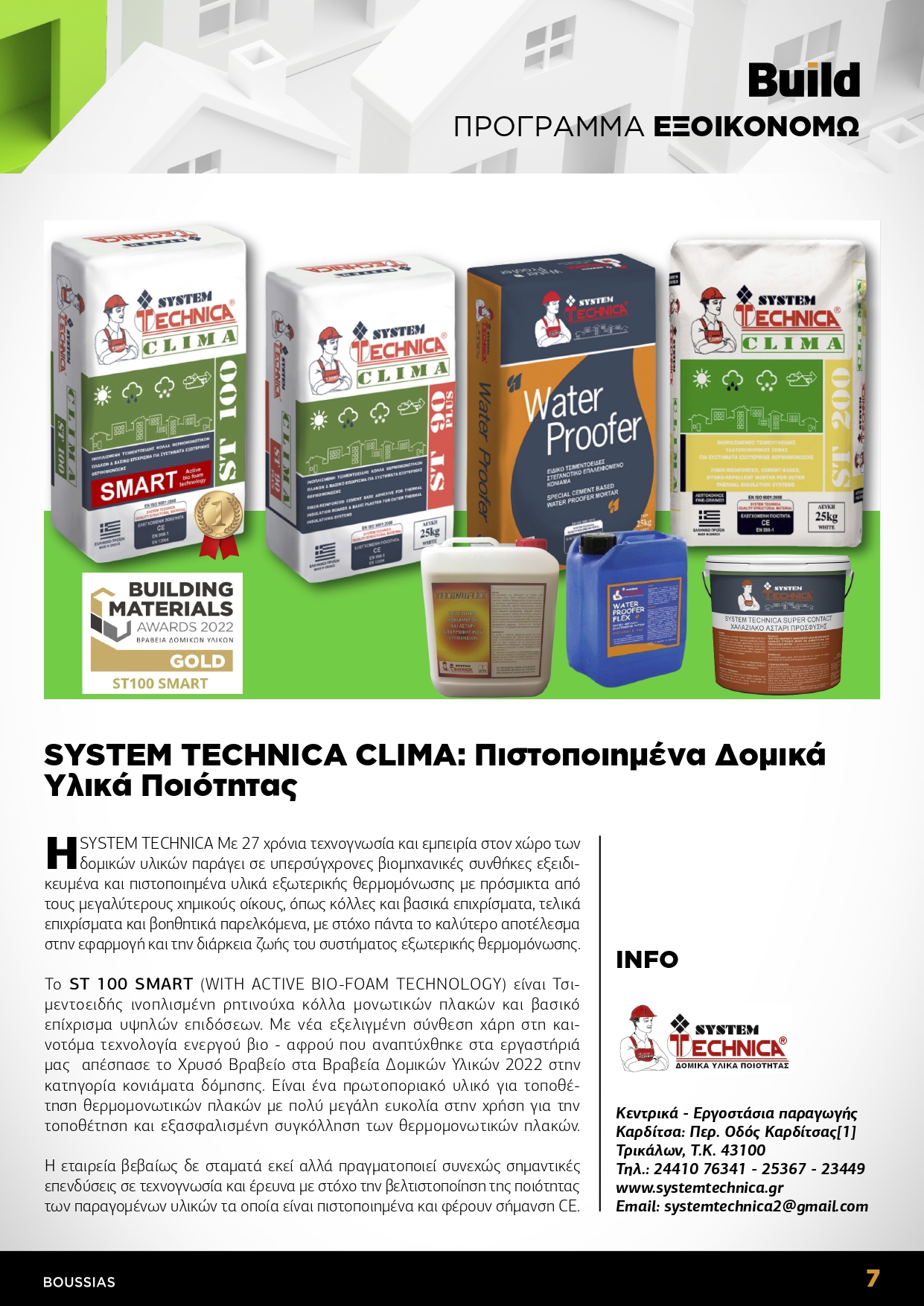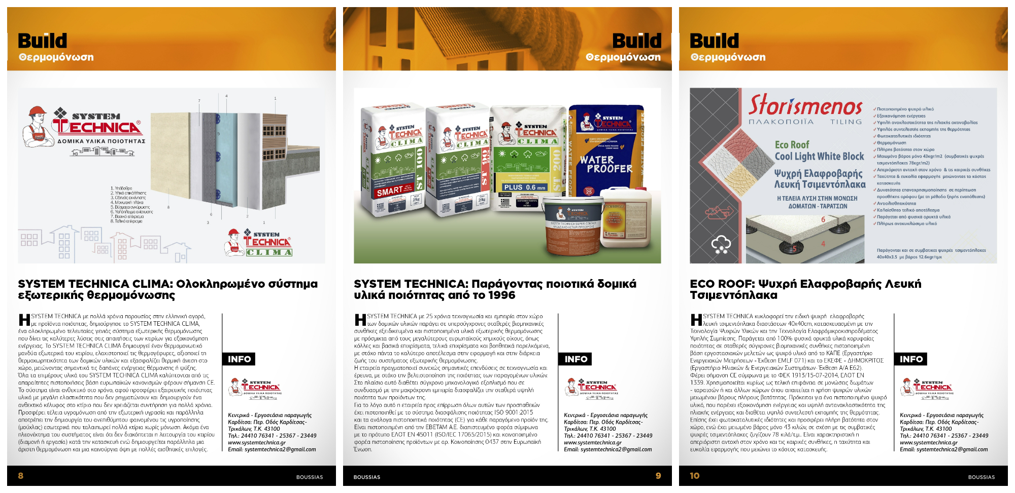 Η έμπειρη ομάδα μηχανικών της SYSTEM TECHNICA ενημέρωσε, μεταξύ άλλων, το συμμετέχον προσωπικό καθώς και αρχιτέκτονες, πολιτικούς μηχανικούς, κατασκευαστές, διακοσμητές και εφαρμοστές για τα πολλά νέα προϊόντα της εταιρείας που κυκλοφόρησαν στην αγορά το τελευταίο διάστημα. Το μεγαλύτερο μέρος όμως της ενημέρωσης αφιερώθηκε στη live επίδειξη των εφαρμογών του ολοκληρωμένου συστήματος της SYSTEM TECHNICA ART πατητής τσιμεντοκονίας, καινοτόμου σειράς διακοσμητικών επιστρώσεων για δάπεδα και τοίχους. Επιπλέων βάρος δόθηκε και στην ενημέρωση για το SYSTEM TECHNICA CLIMA, ένα ολοκληρωμένο τελευταίας γενιάς σύστημα εξωτερικής θερμομόνωσης που δίνει τις καλύτερες λύσεις στις απαιτήσεις των κτιρίων για εξοικονόμηση ενέργειας.